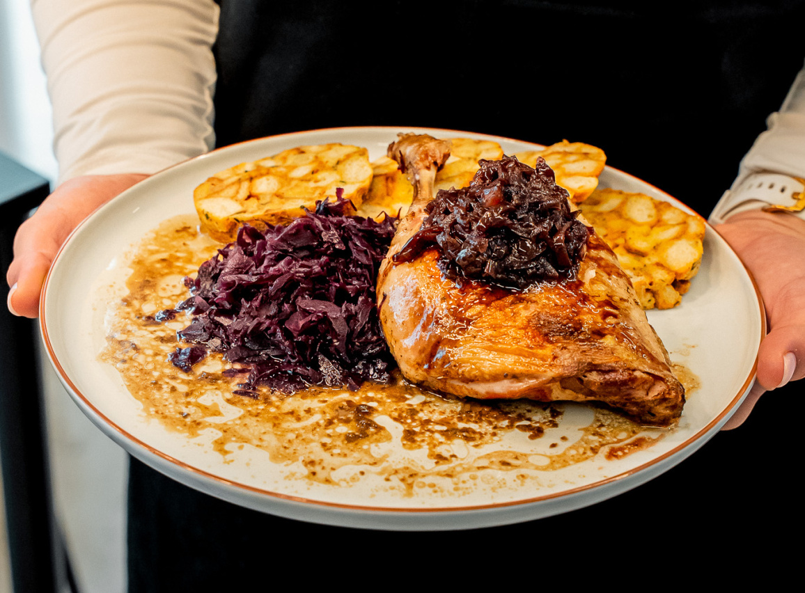 Součástí nabídky je také lahůdkový pult, kde najdete obložené chlebíčky včetně variant pro vegany a vegetariány. Bistro tak dokáže oslovit opravdu široké spektrum hostů – od milovníků tradiční kuchyně až po ty, kteří hledají lehčí nebo bezmasé varianty. V nabídce nechybí ani teplá jídla inspirovaná českými a slovenskými kuchaři a řezníky, což podtrhuje propojení tradice s moderním pojetím bistra.