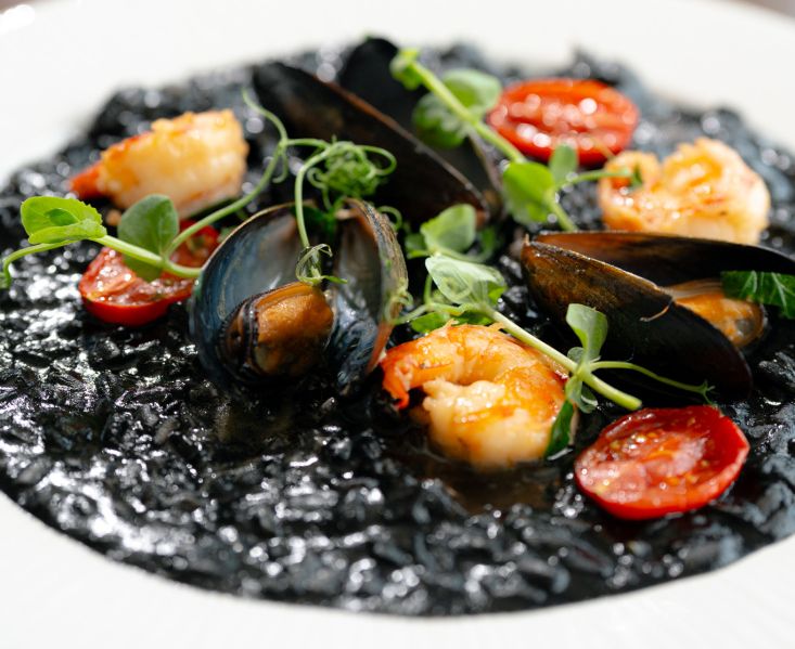 Milovníci mořských plodů na zdejší palubu míří mimo jiné na Risotto Nero – sépiové černé risotto z prémiové rýže Carnaroli se slávkami, chobotnicí, tuňákem, krevetami, sušenými rajčaty, chilli a limetou. „Tohle typické italské jídlo máme v menu minimálně pět let, stejně jako gamberi. Risotto Nero má kořeny v Benátkách, kde bylo jídlem rybářů a místních rodin, v některých italských regionech je to postní jídlo. Čerstvé mušle, které používáme, mu dávají neodolatelnou vůni moře,“ podotýká Petr Topol.